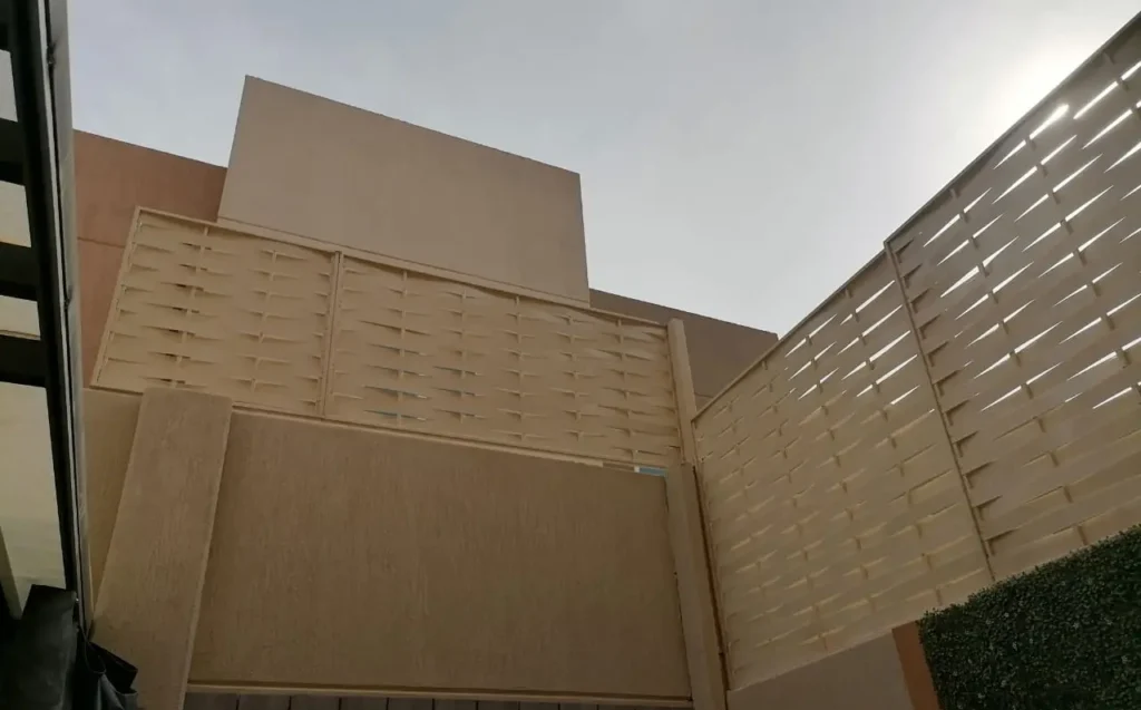 توفر خصوصية مرنة؛ حيث يمكن رفعها عند الحاجة لستر الحوش أو المسبح، وخفضها للسماح بمرور الضوء والهواء، مما يمنع الشعور بالانغلاق الدائم.